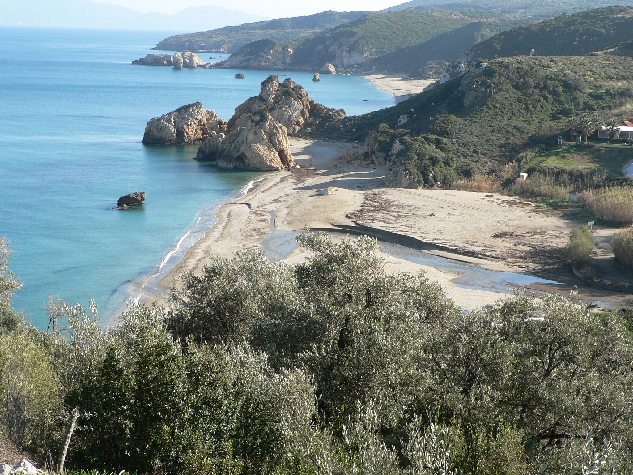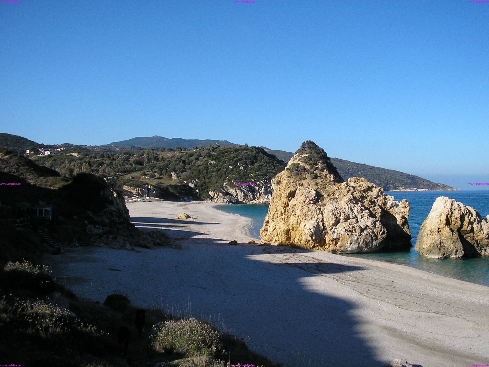 Am Ausgang des kleinen Flusstales Potistika liegen einige der schönsten Badebuchten Griechenlands. Kristallklares Wasser, Sand und feiner Kies, umrahmt von Felsen, Olivenhainen, Schilf und Makia, laden an diesen Stränden zum Baden ein. Mit Ausnahme der Wochenenden der griechischen Hauptferienzeit Mitte Juli bis Ende August sind die Strände oft nur von wenigen Badegästen besucht. In den Monaten April - Juni und September - Oktober kann man neben dem meist schönen Wetter auch die Abgeschiedenheit der Strände fast alleine genießen.